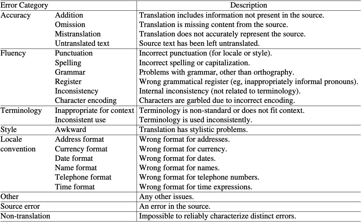 Multidimensional Quality Metrics (MQM) [2]
