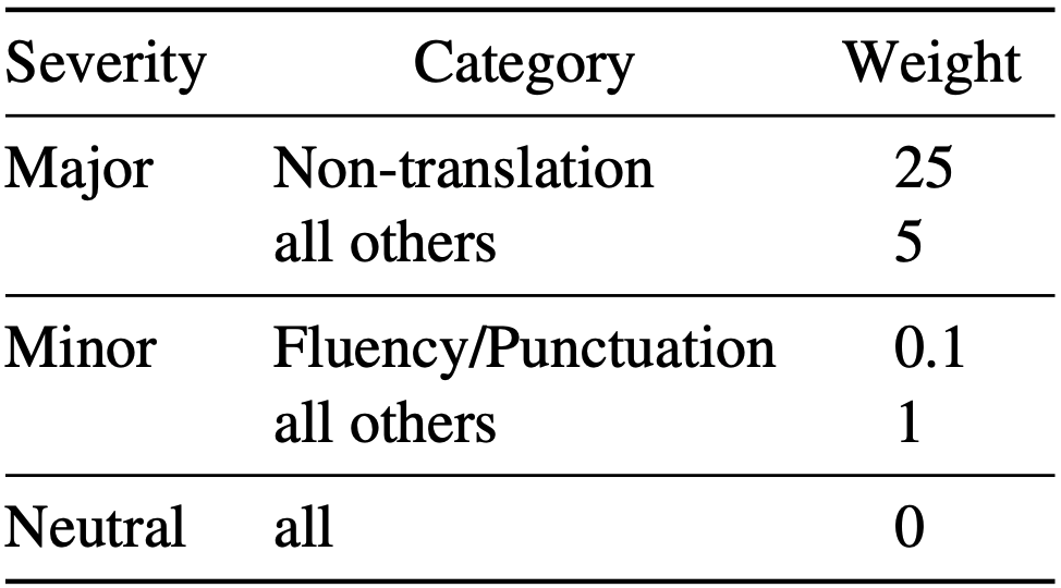 - [2] Freitag et al. (2021). Experts, errors, and context: A large-scale study of human evaluation for machine translation. Transactions of the Association for Computational Linguistics, 9, 1460-1474.